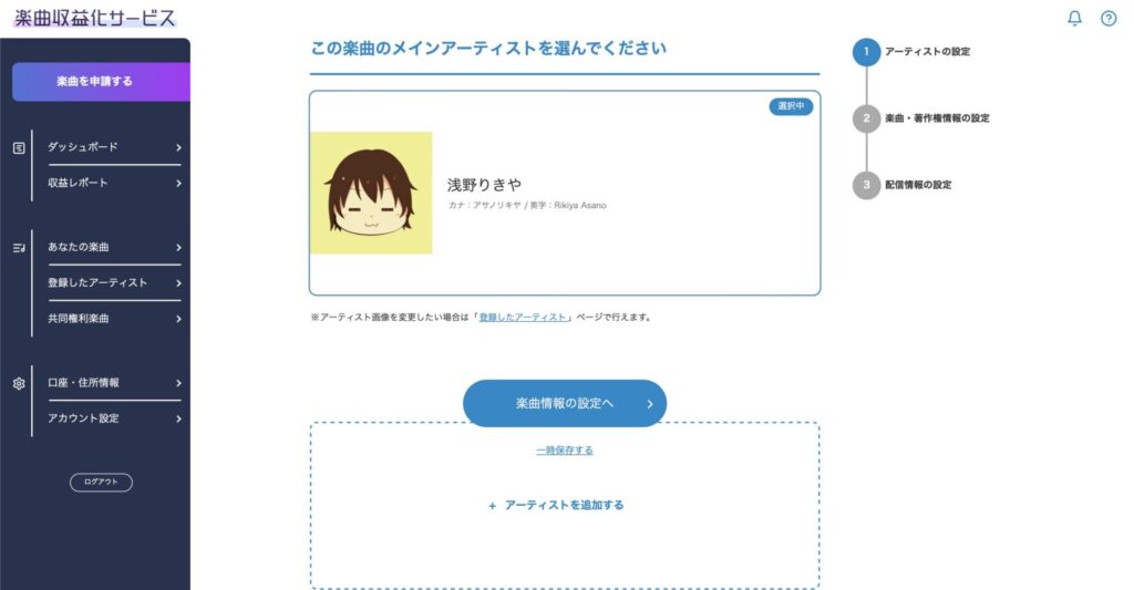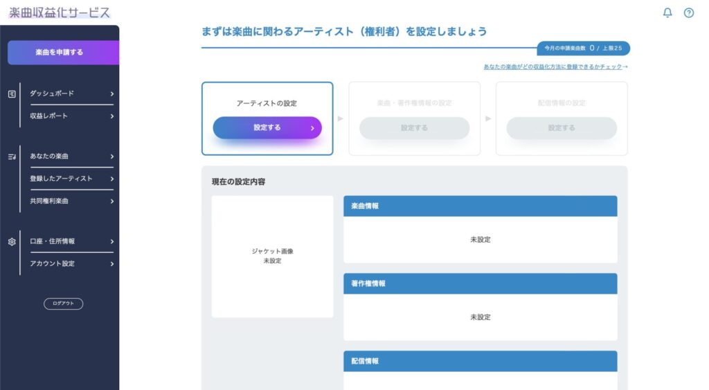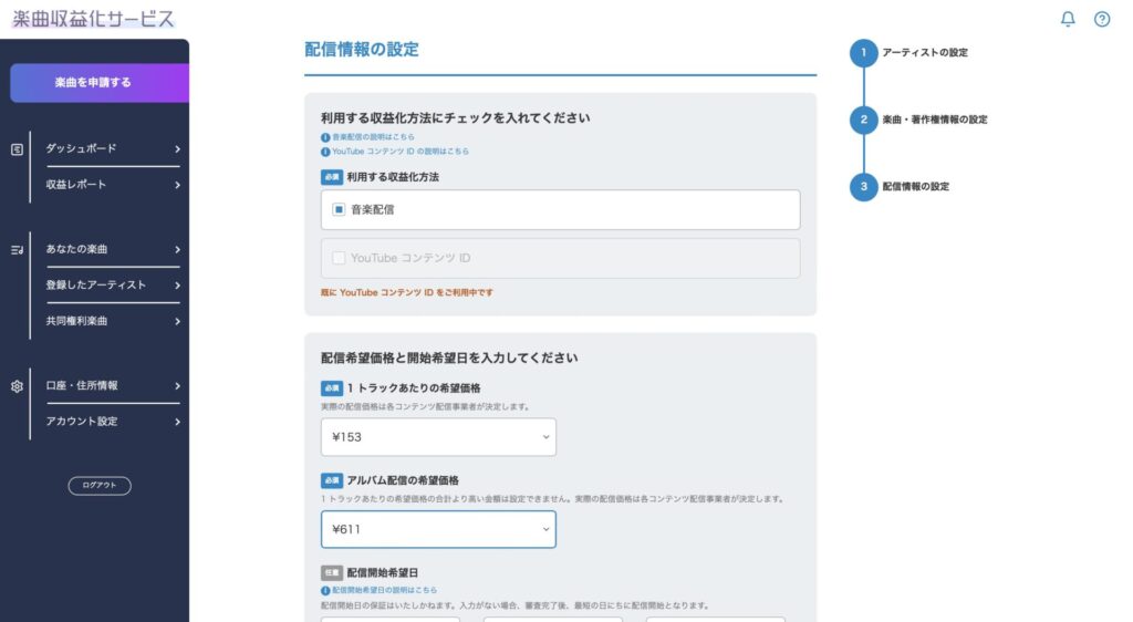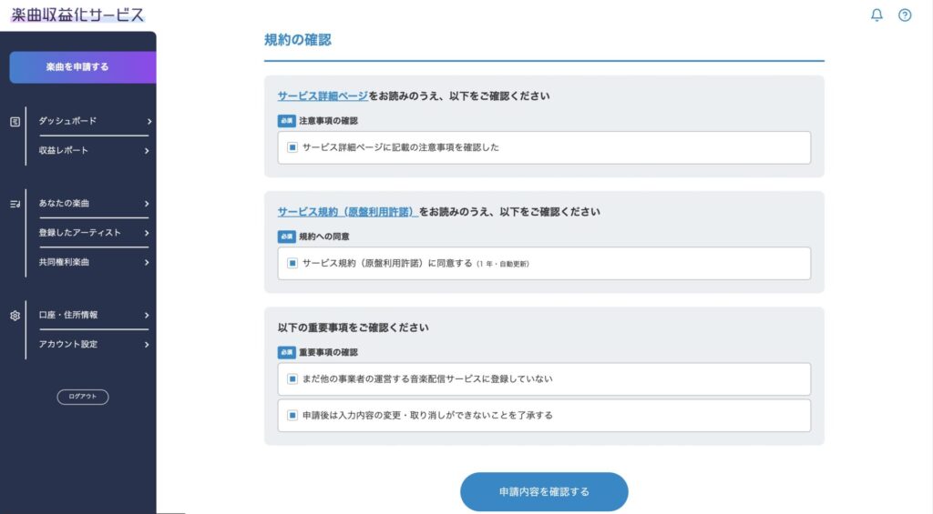 楽曲収益化サービスの申請手順
