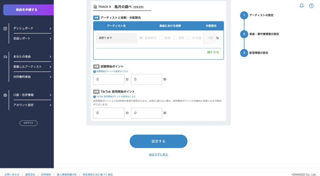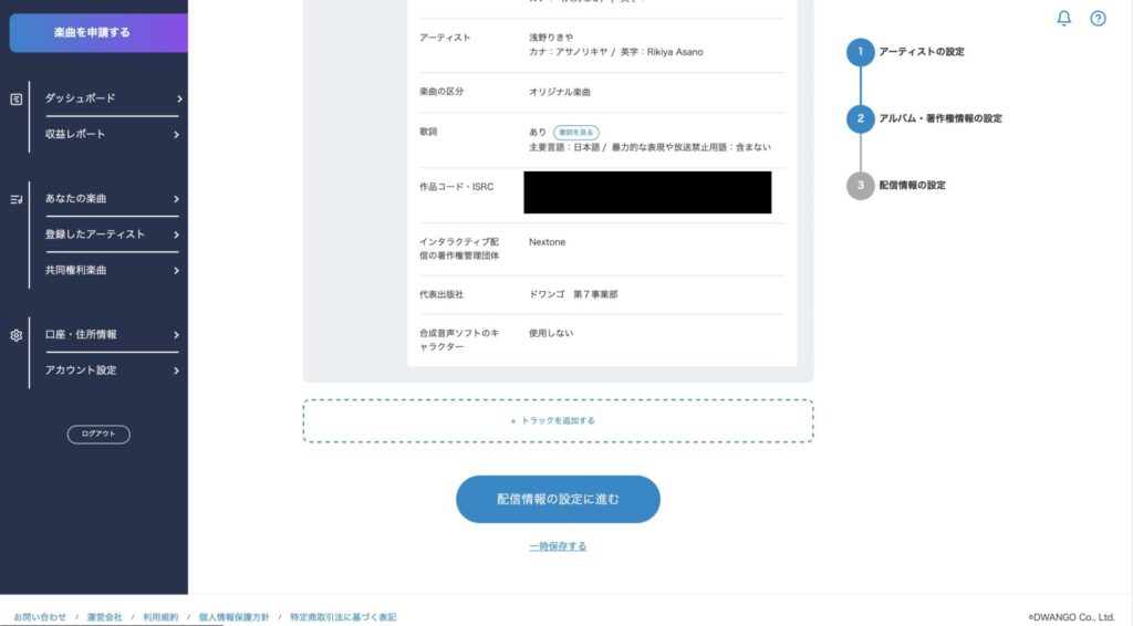 すでに楽曲を配信しているので、入力は不要でした。